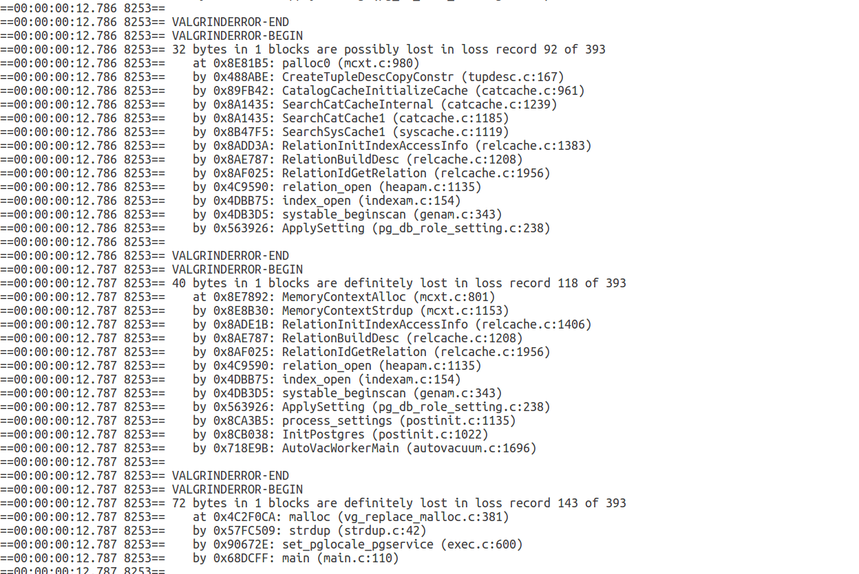 <https://wiki.postgresql.org/wiki/Valgrind> started postgres server with