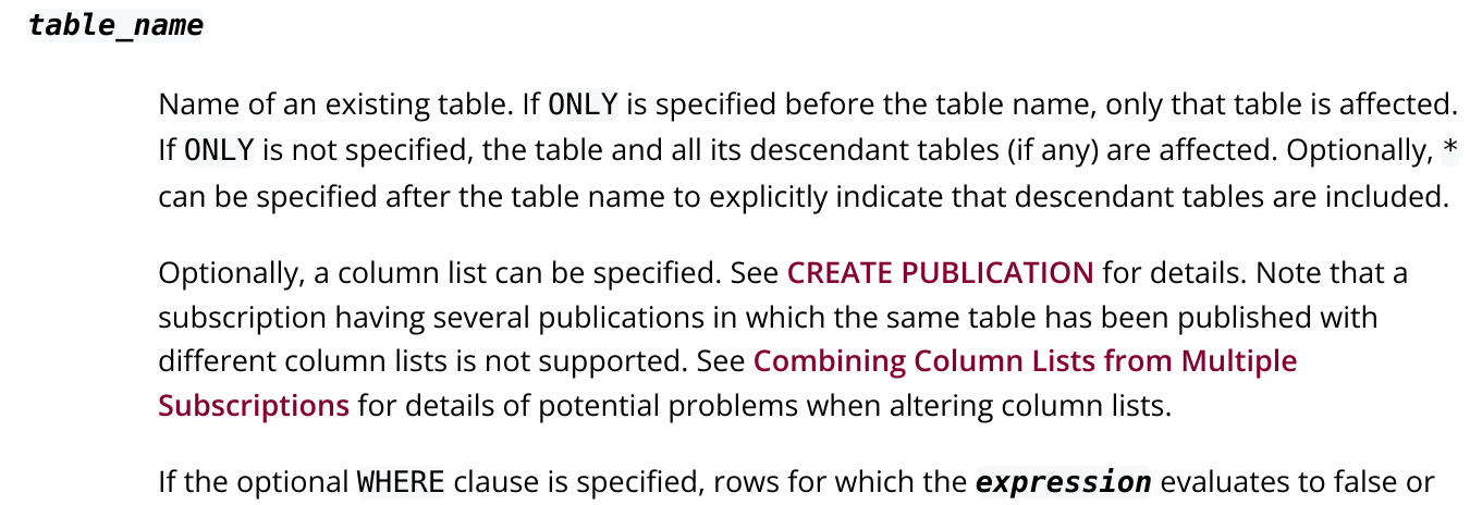 + See <xref linkend="sql-createpublication"/> for details on the syntax.