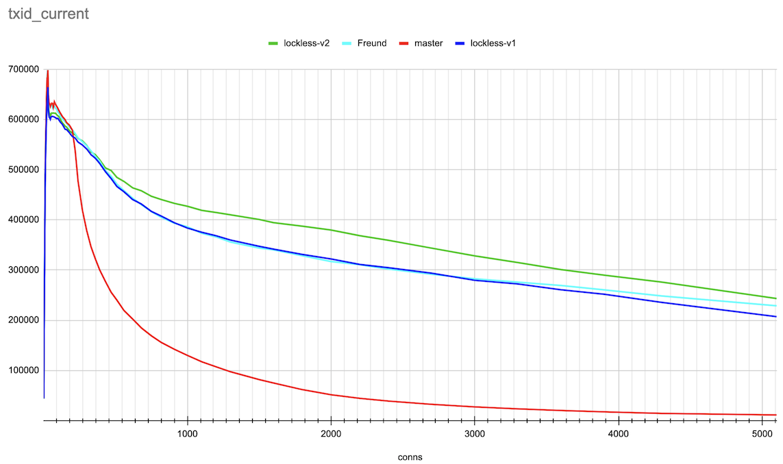 insert-only and txid_current tests with ~1000 connections pgbench