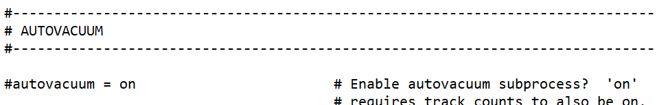 configuration in postgres.conf where the autovacuum=on is commented out.[image: Shape Description automatically generated]