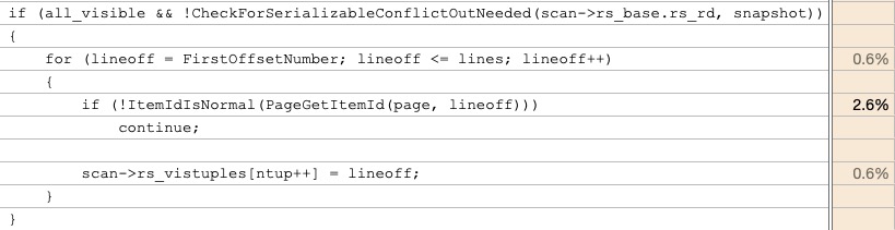 Many actions in tuple loops are superfluous. For all_visible pages,