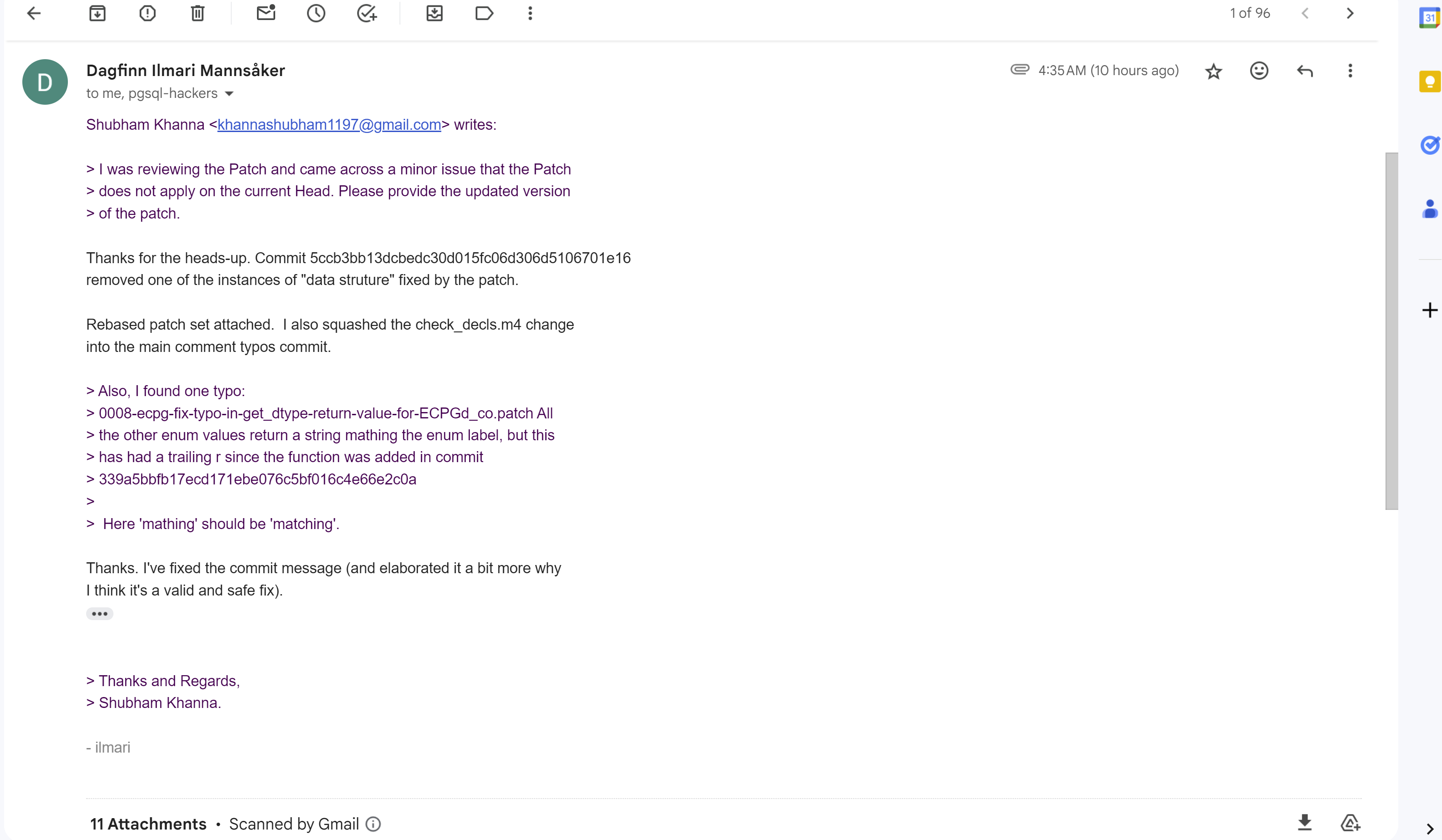 of the patch.Thanks for the heads-up. Commit 5ccb3bb13dcbedc30d015fc06d306d5106701e16