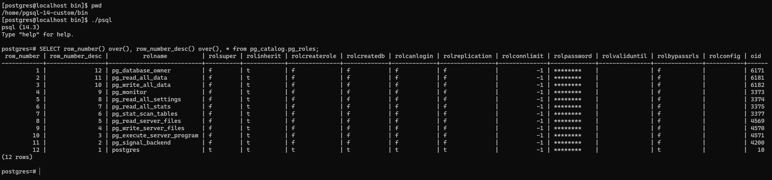 To streamline the daily process, I conducted a laboratory (prototype, test) using the PostgreSQL 14.3 version doing a small customization. I implemented the window function "row_number_desc," as detailed below.