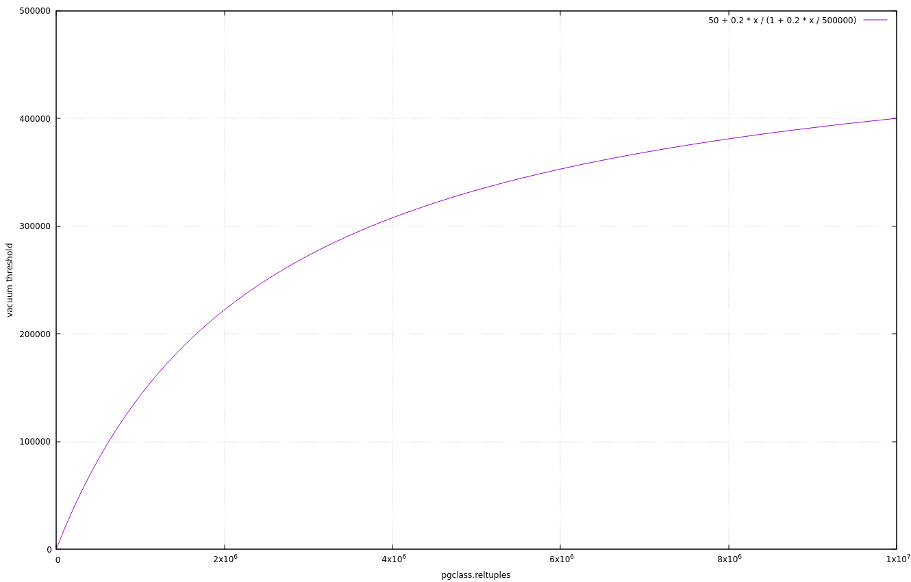 The attached graph plots vacthresh against pgclass.reltuples, with