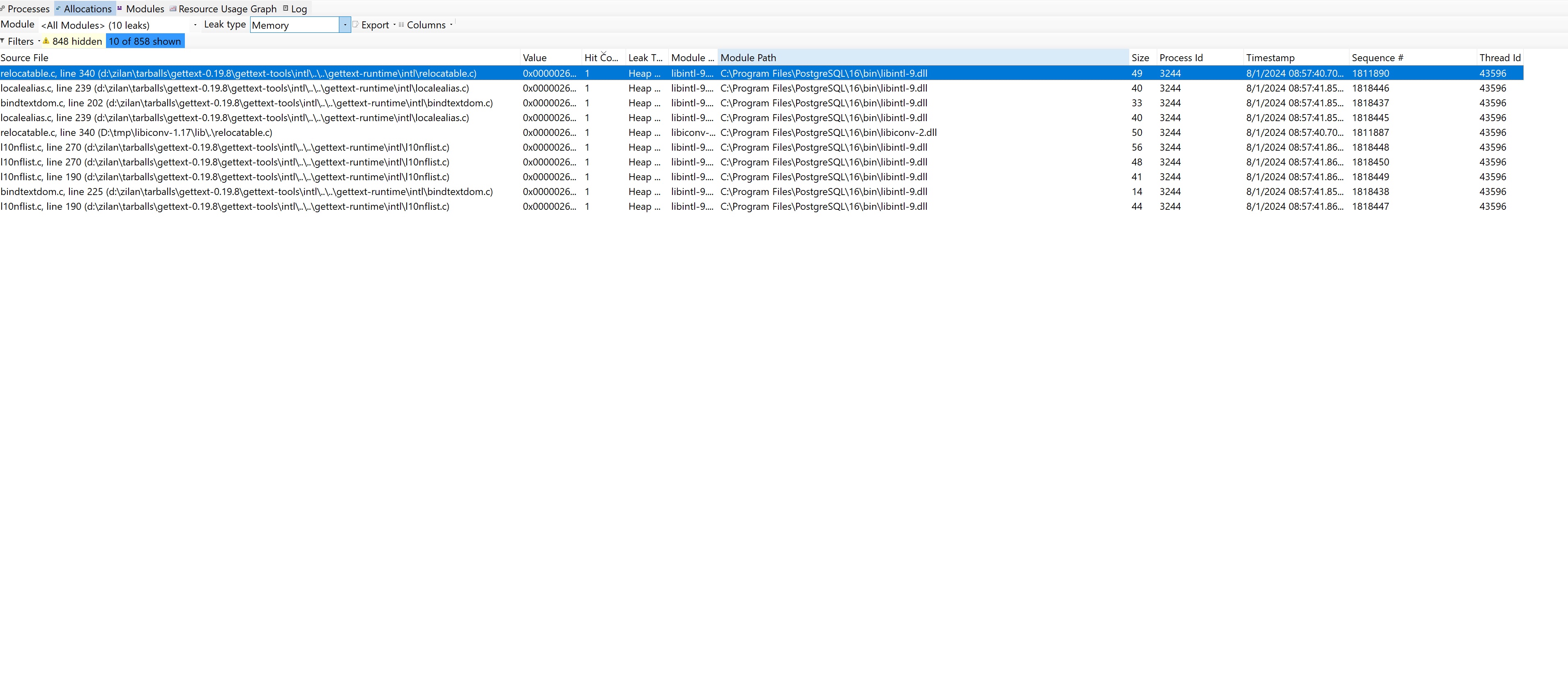 Memory growth observed with C++ application consuming libpq.dll on Windows