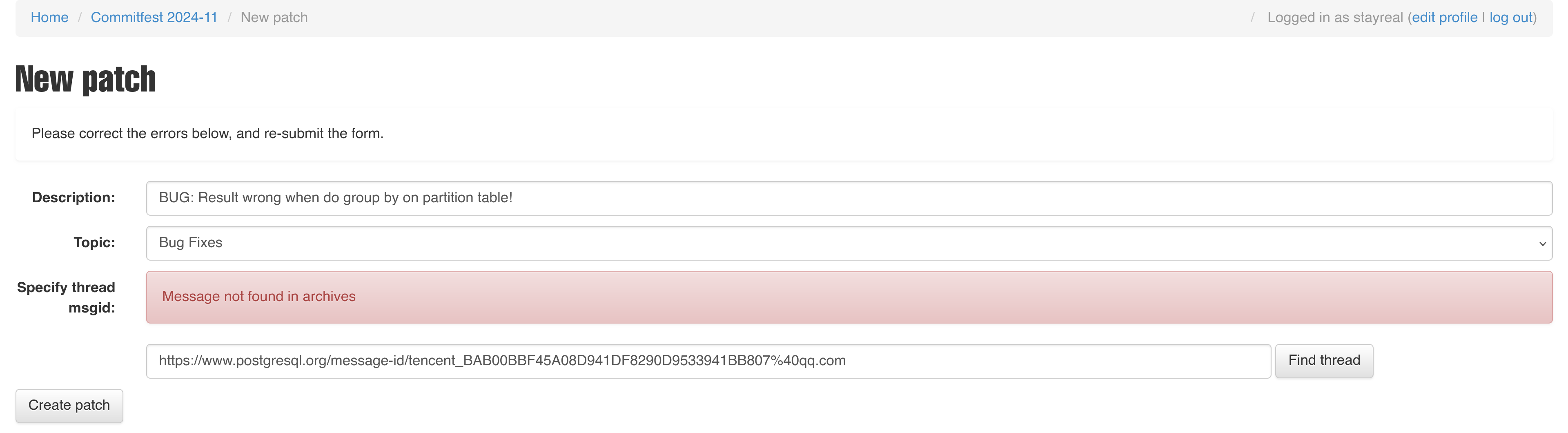 <pgsql-bugs(at)lists(dot)postgresql(dot)org>.recently, I try to register an entry for
