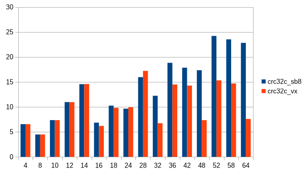 "slicing-by-8" and "vectorized CRC-32C" to report "S390X Vector