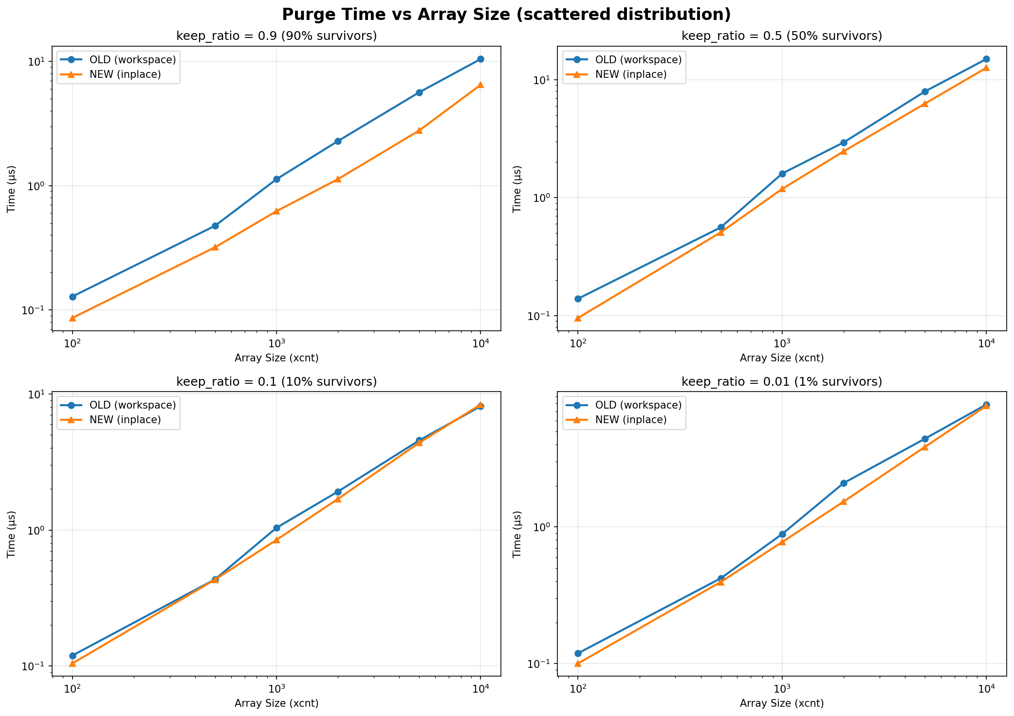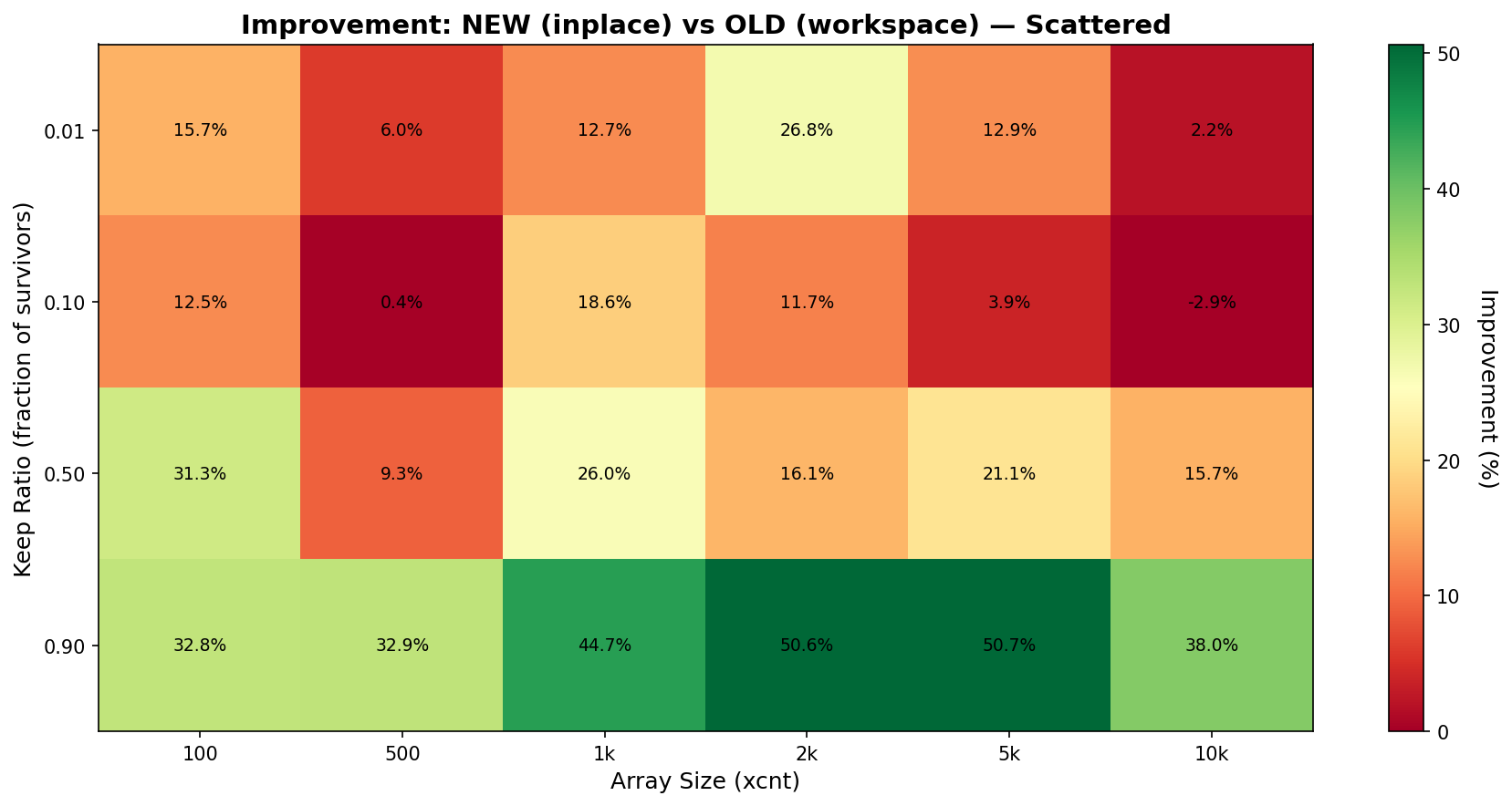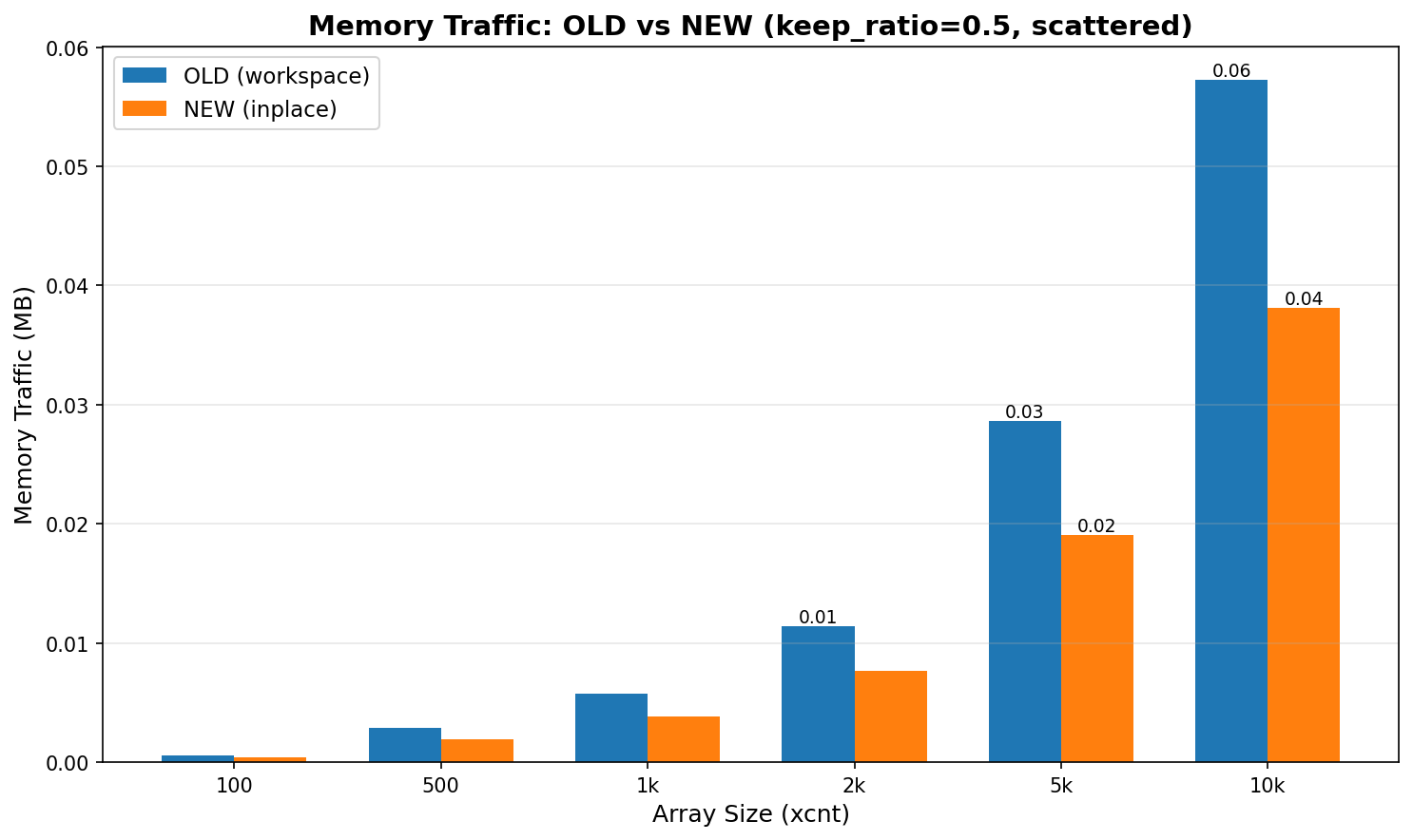 (OLD=workspace+memcpy vs NEW=in-place compaction).