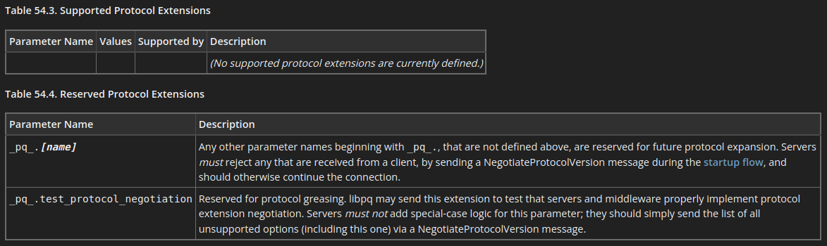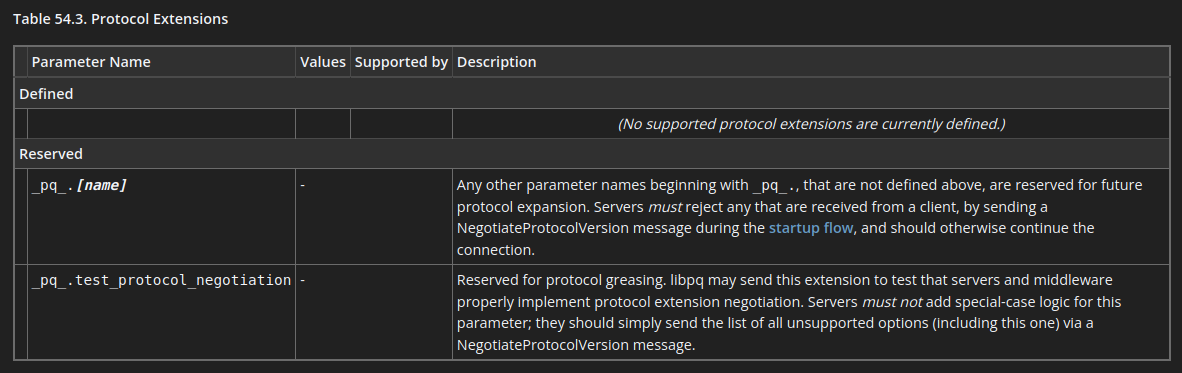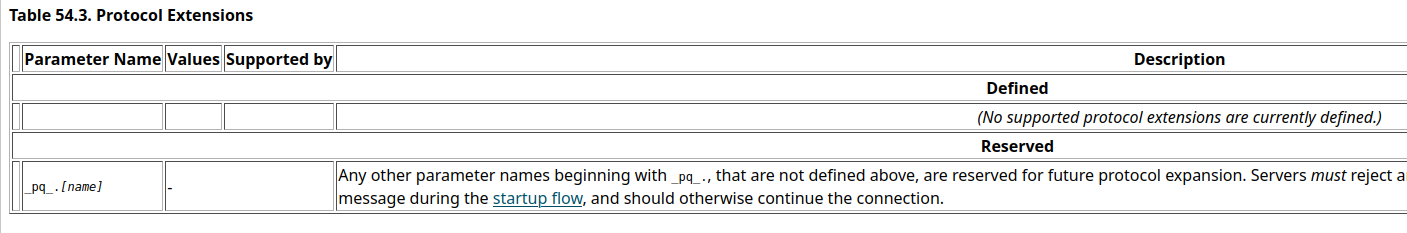 ecosystemThe main reason that libpq does not request protocol version 3.2 by