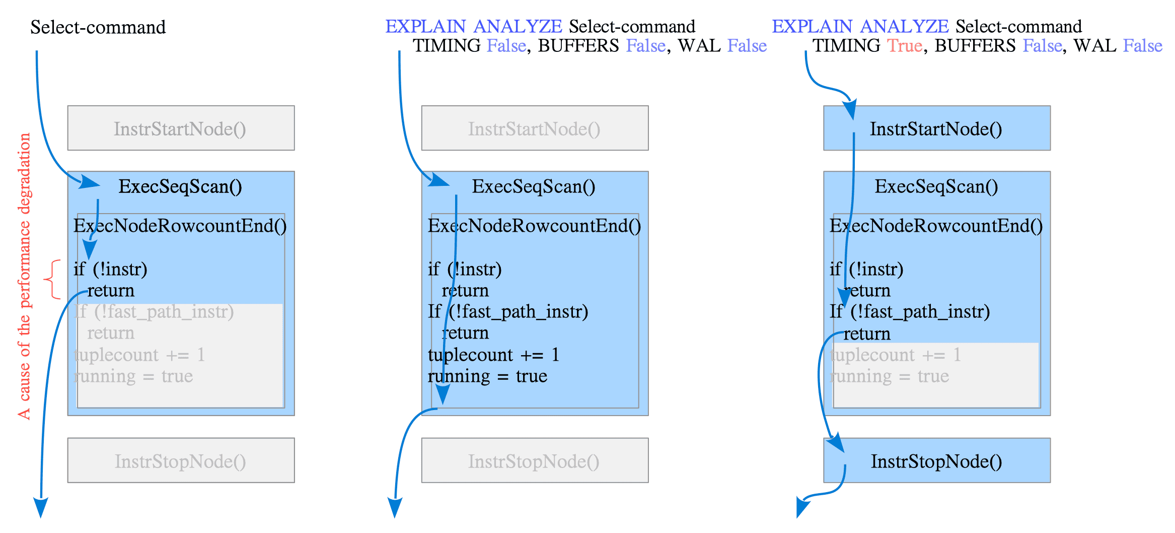 ExecProcNodeInstr() are the primary sources of overhead (see Appendix