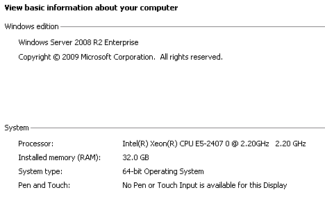 Operating system: Windows 2008 R2 Server