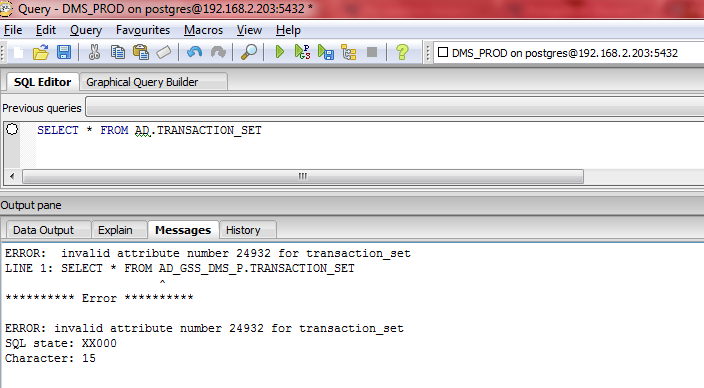 LINE 1: SELECT * FROM AD_GSS_DMS_P.TRANSACTION_SET
