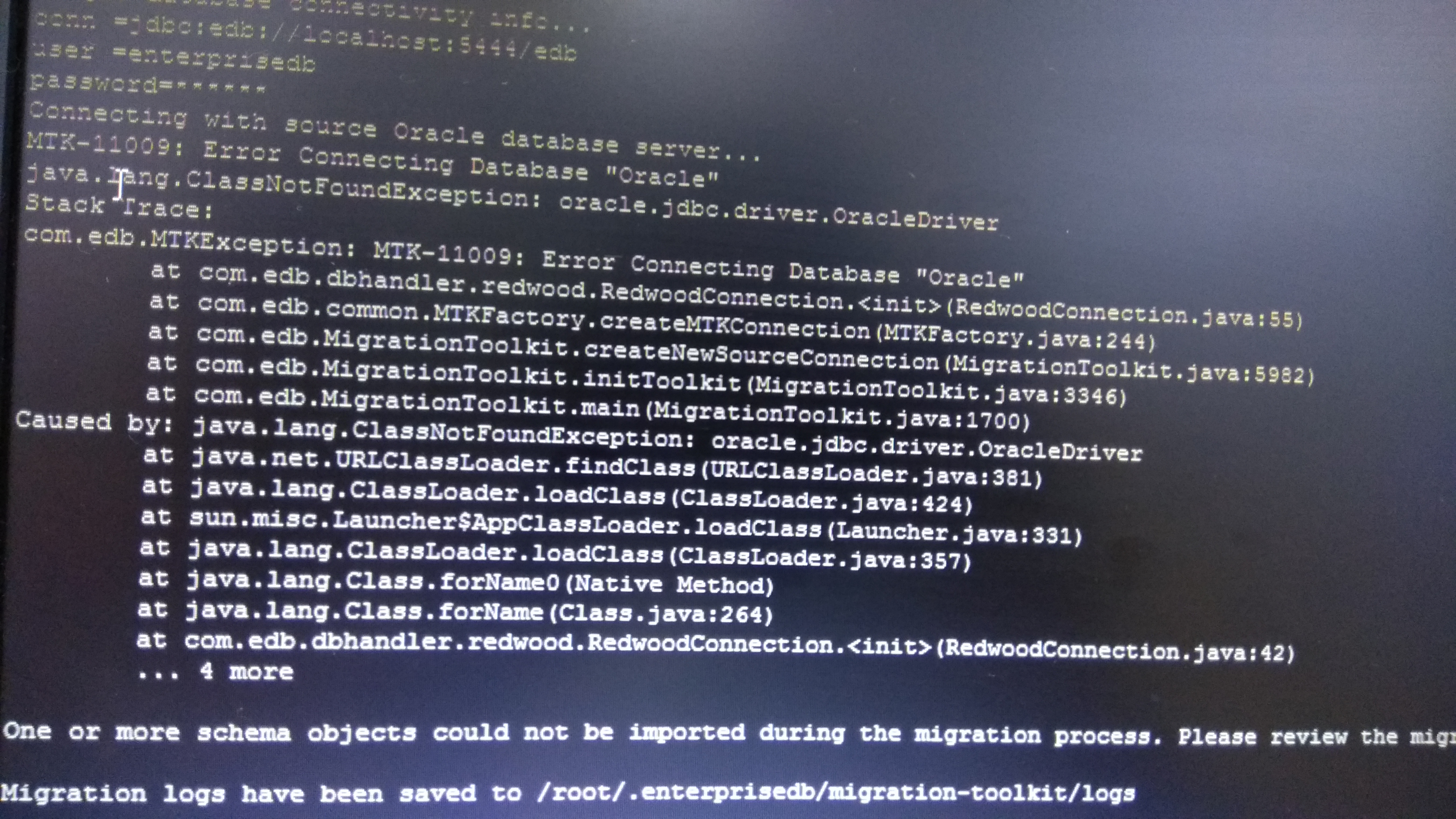 When am trying to migrate the data Oracle to postgres am getting this