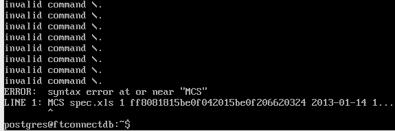 psql dbname < infileBut at the transfer process, it showed the error message as shown as the