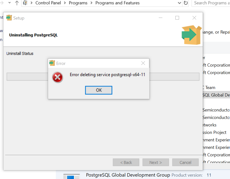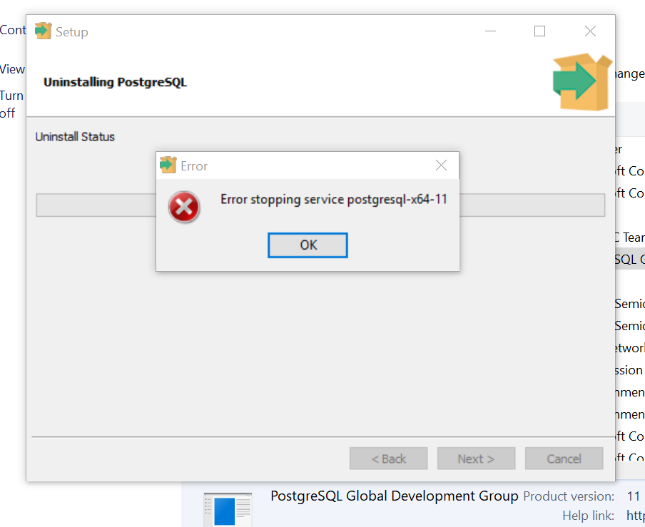 2. Stop postgresql-x64-11 service from Administatrive tools and services