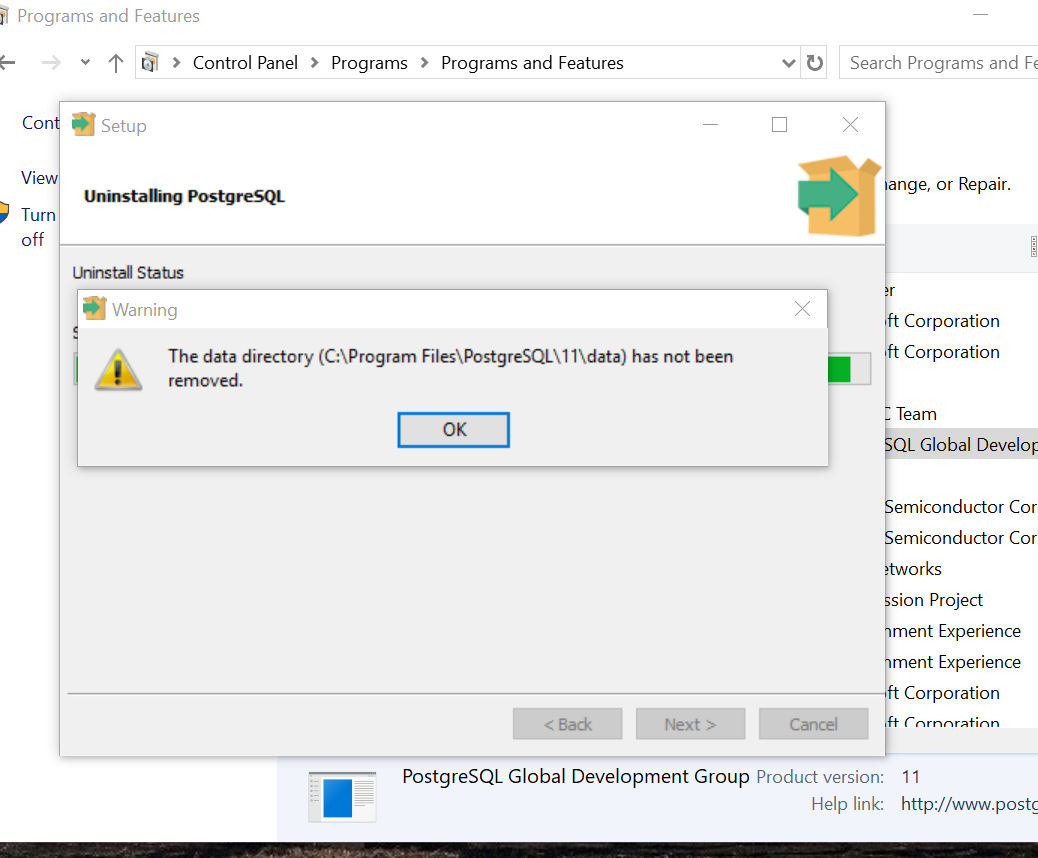 5. remove data folder C:\Program Files\PostgreSQL\11\data