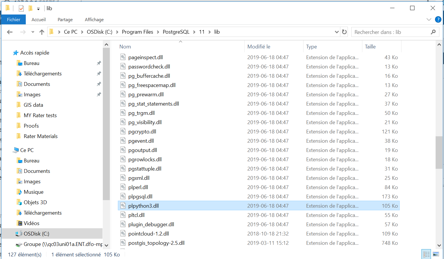 Files/PostgreSQL/11/lib/plpython3.dll » : The specified module could not be