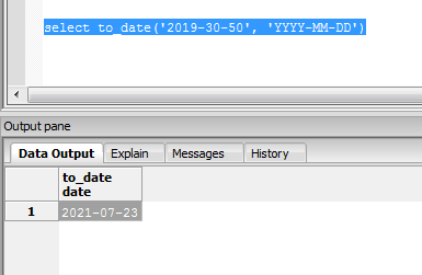 if you try "SELECT to_date('2019-30-50', 'YYYY-MM-DD') instead of