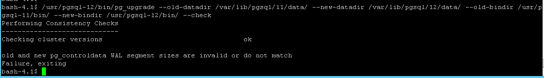 "bash-4.1$ /usr/pgsql-12/bin/pg_upgrade --old-datadir