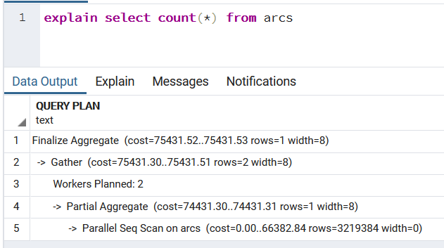that Postgres is performing a sequential scan with 2 workers instead of just returning the number or rows!