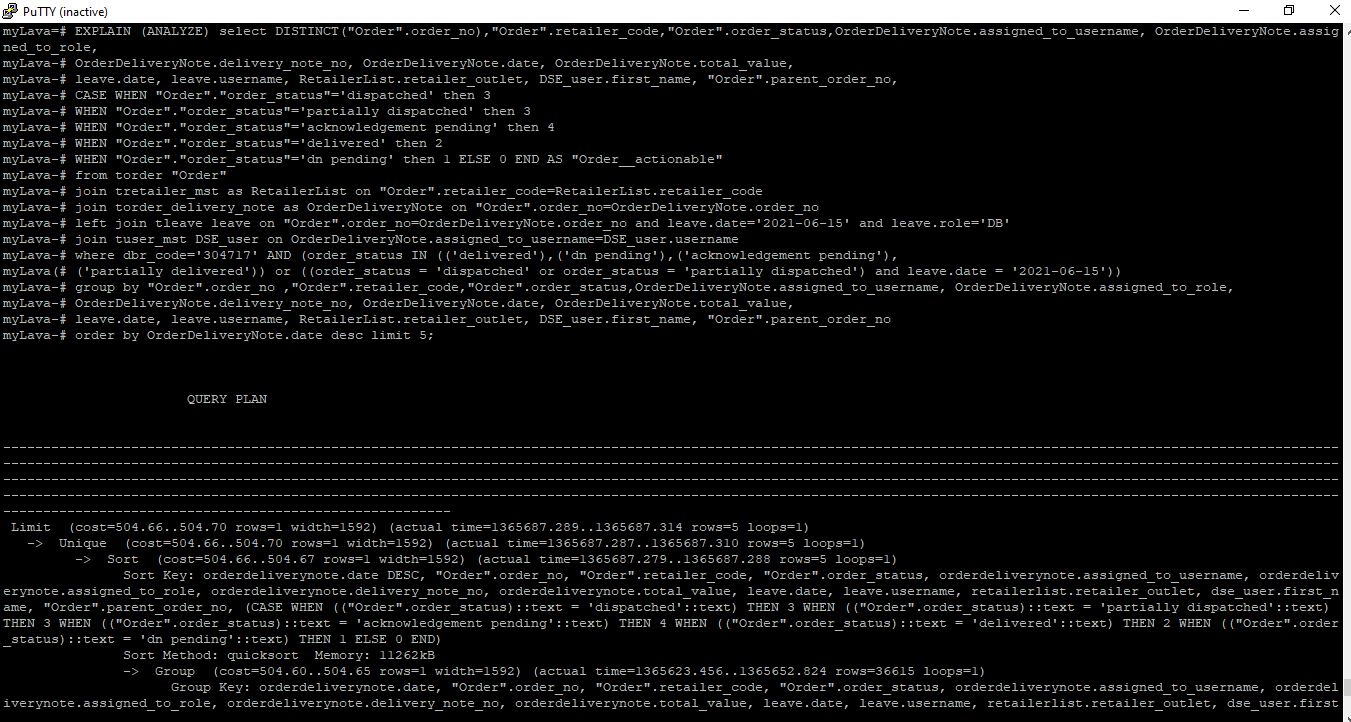 Sort Key: orderdeliverynote.date DESC, "Order".order_no, "Order".retailer_code, "Order".order_status, orderdeliverynote.assigned_to_username, orderdeliv