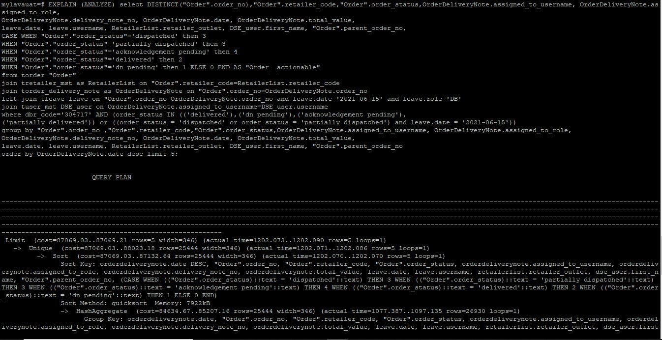 Filter: ((("Order".order_status)::text = ANY ('{delivered,"dn pending","acknowledgement pending","partially delivered"}'::text[]