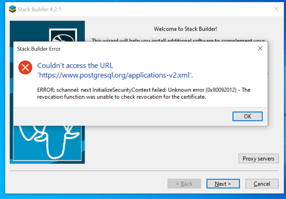 I get the following error when Stack Builder is installing: