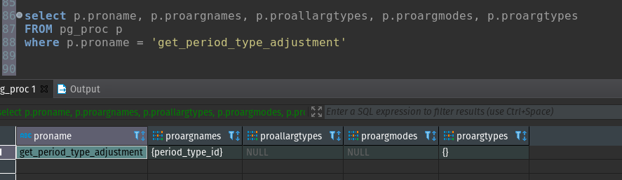 regression=# select * from pg_proc where proname = 'get_period_type_adjustment';