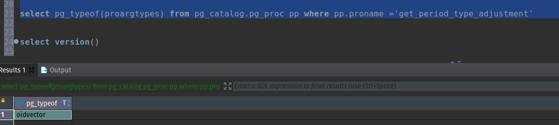 I'm using DBeaver as my IDE. The column does appear to be oidvector. Other