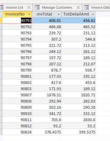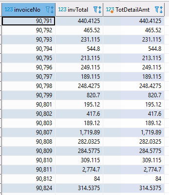 the invTotal and TotDetailAmt and here's what came up. As you will see,