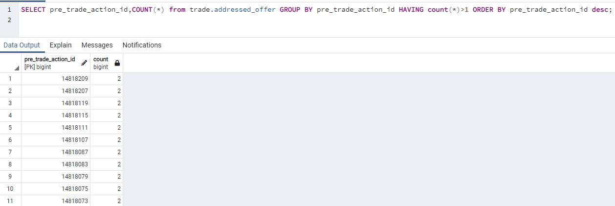 SELECT action_id,COUNT(*) from offer GROUP BY action_id HAVING count(*)>1;
