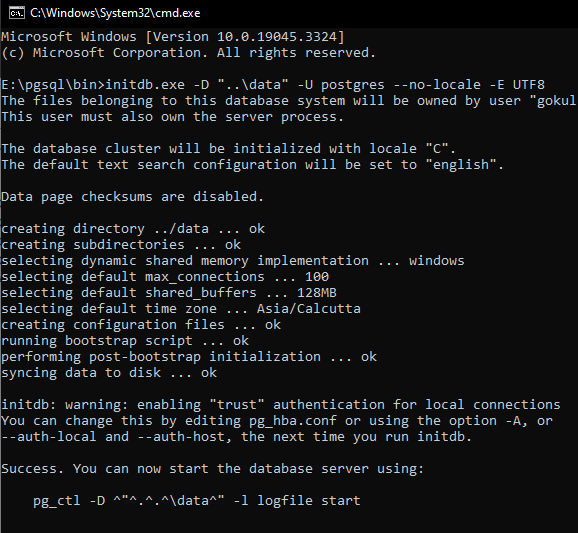 You can now start the database server using: pg_ctl -D ^"^.^.^\data^" -l