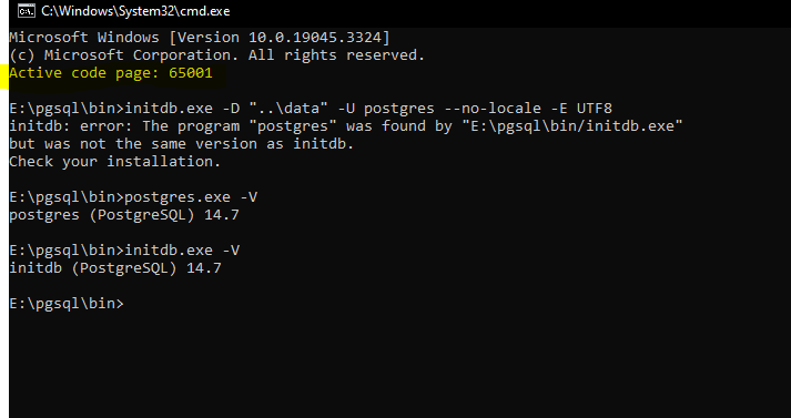 "E:\pgsql\bin/initdb.exe"but was not the same version as initdb.Check your