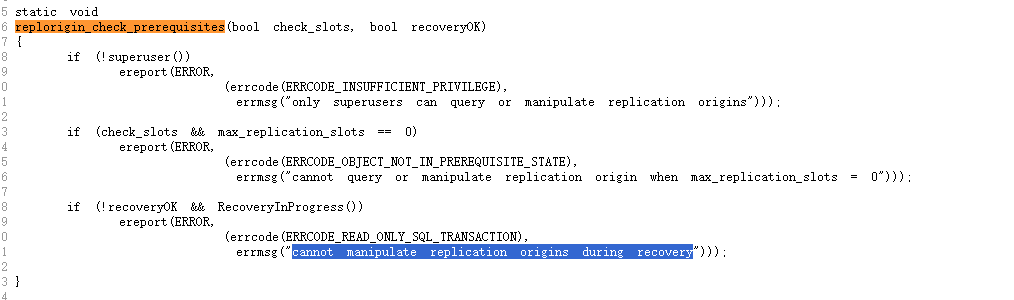And you perform the WAL log offset reset function, must do a validation by replorigin_check_prerequisites.