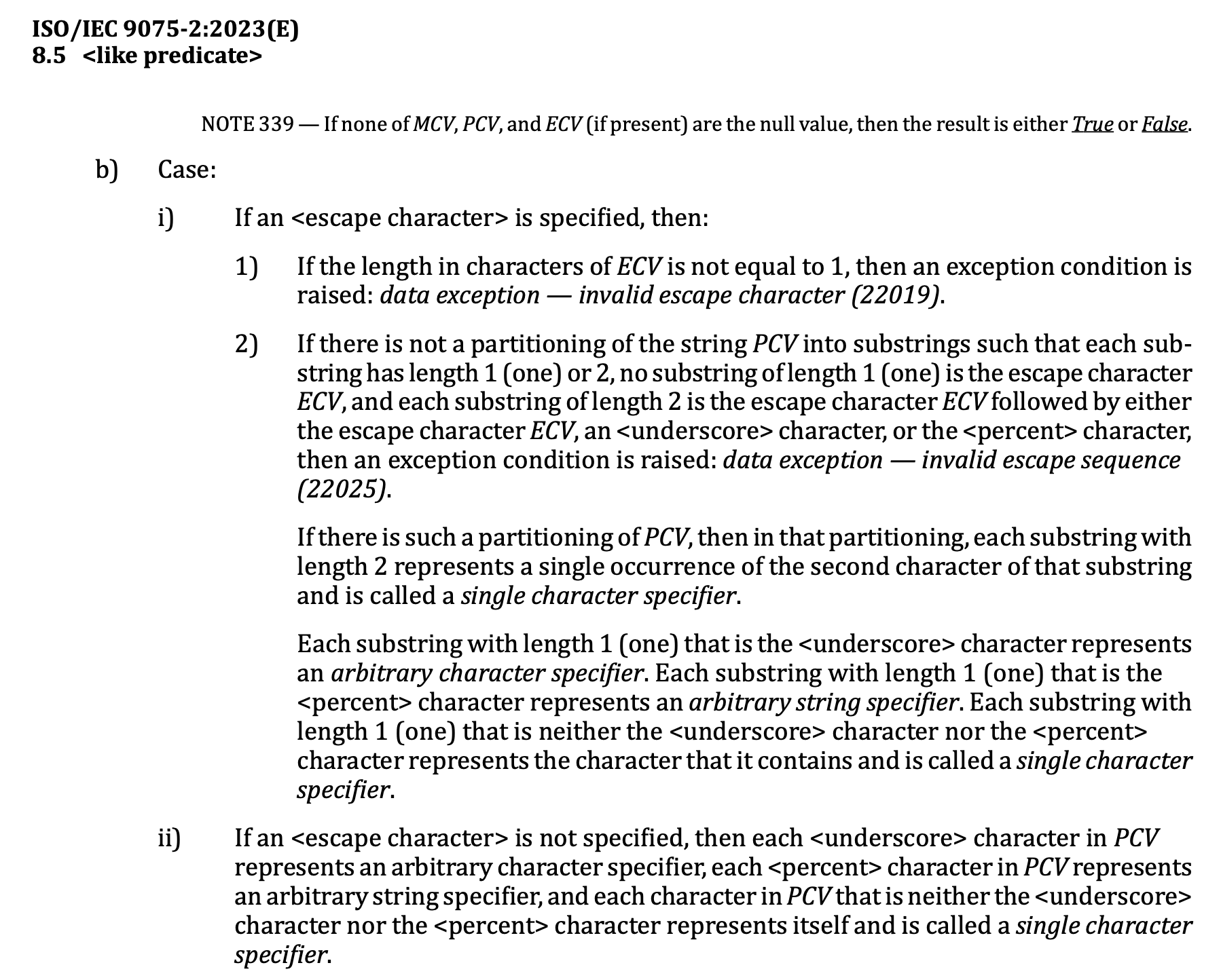 documentation for LIKE so a sentence covering this deviation seems