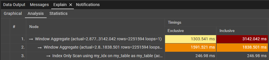 (2 rows)greg=# explain select count(*) over (partition by oid rows between 1000