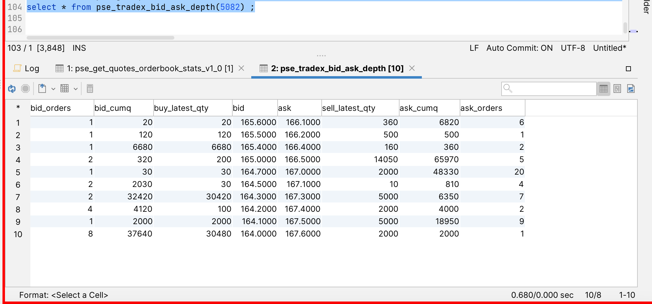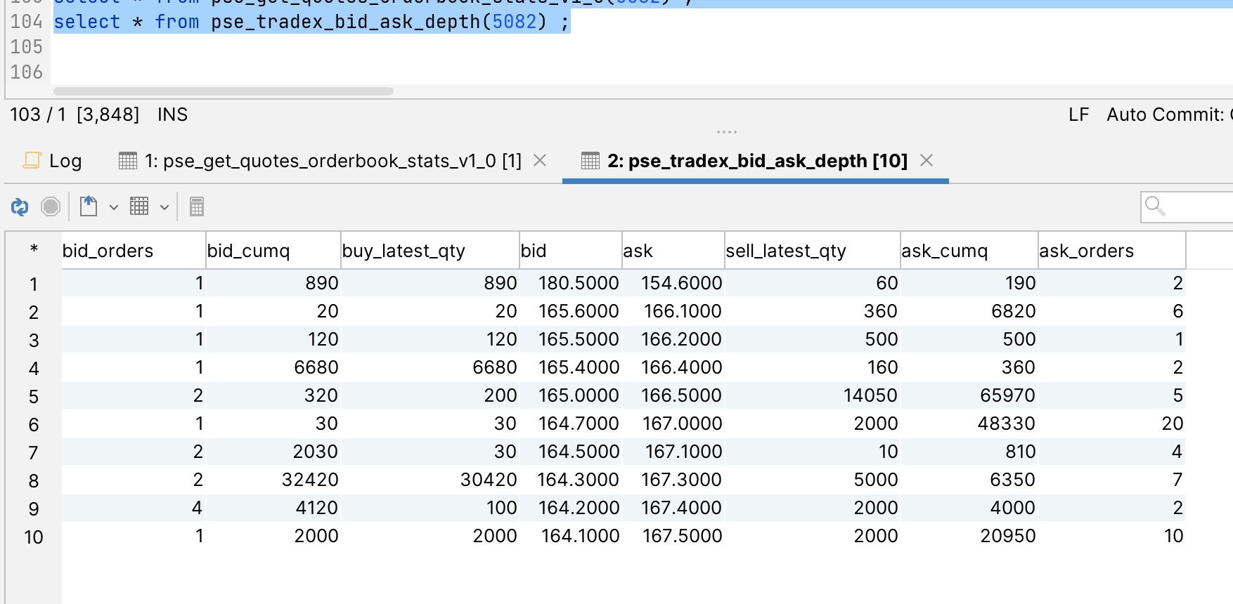 SELECT x.BID_orders, x.BID_CumQ, z.buy_latest_qty, x.BID ,