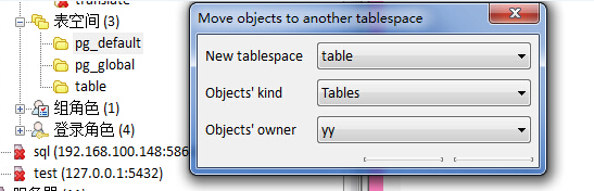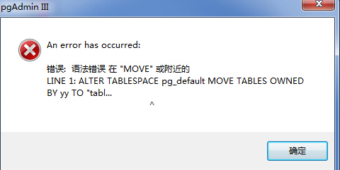 LINE 1: ALTER tablespace pg_default MOVE TABLES OWNED BY yy TO "tabl...