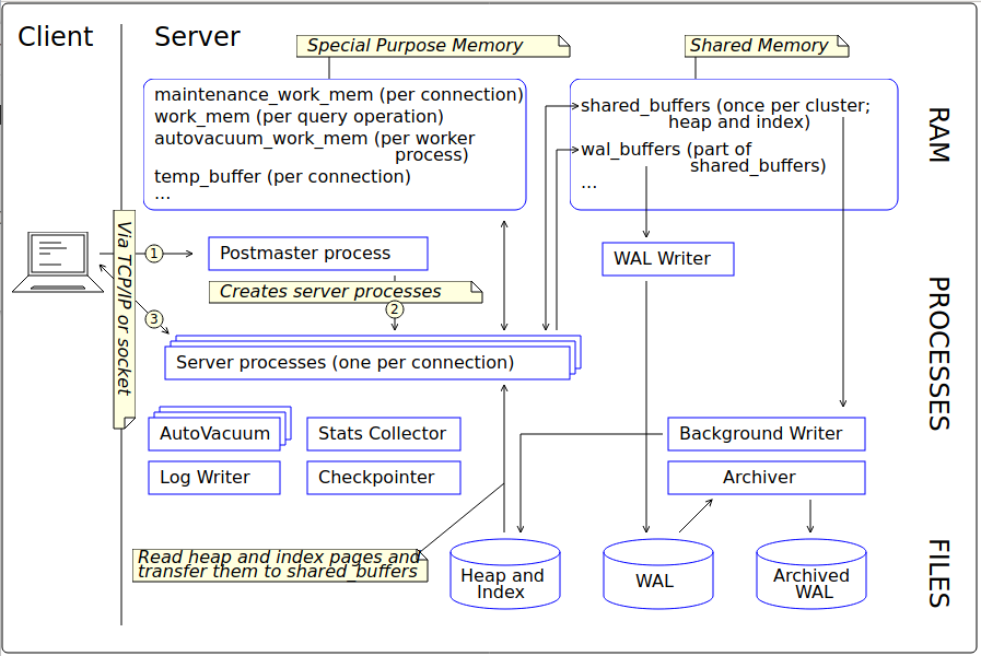 - wal_buffers is shared memory, but it is not a part of shared_buffers