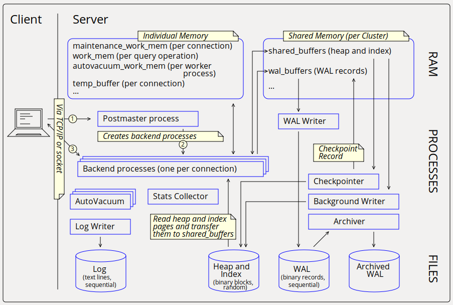 - The "server process" is traditionally called "backend process"