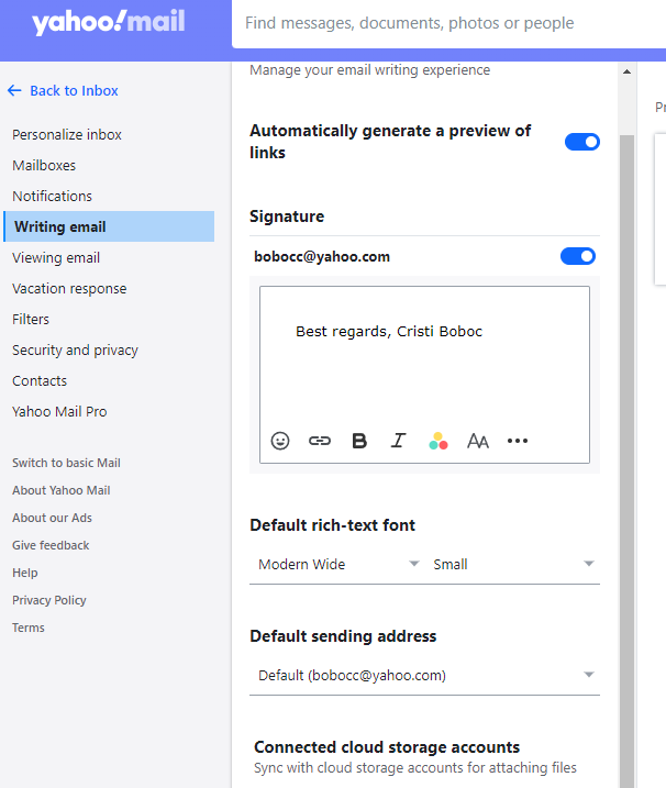 I have not found the setting you are talking about. I attach here a screenshot of the settings page. Since obviously you are more experimented than me about the mail clients, please help.I mention I am using Yahoo's web client.